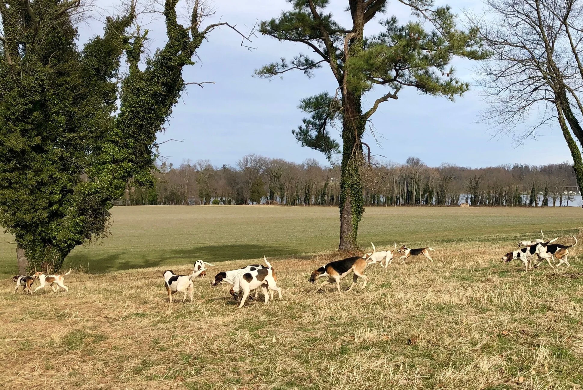 If you see a fox, a conversational “Tally Ho” and tipping your hat or pointing your whip will give others a chance to view also. If asked by the Field Master, ride to the line of the fox, point your horse in the direction the fox was going and hold up you cap. A raised forearm means “Hold Hard.” Stop where you are and keep silent. Raise your own forearm, also, to signal others behind you.